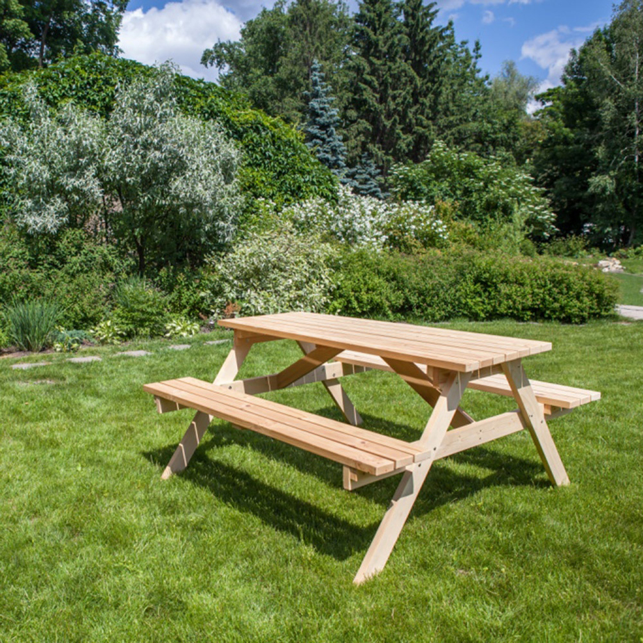 Гарнитур Фотон Пикник мобильный деревянный бежевый, 150 х 150 х 80 см — это мобильная садовая мебель, состоящая из стола и двух лавок без спинки. Комплект идеально подойдет для семейного обеда на свежем воздухе или отдыха компании друзей на даче. Конструкция складывается в штабель, благодаря чему не занимает много места при хранении, а за счет небольшого веса легко поддается транспортировке на новое место. Гарнитур изготовлен из натуральной древесины и будет гармонично смотреться в саду или около загородного дома. Поверхность столешницы и сидений гладкая, без сращенной доски, заусенцев и сколов. Каркас из массива сосны отличается высокой прочностью, долговечностью и износостойкостью. Мебель практичная и неприхотливая в уходе, поэтому в случае загрязнений легко поддается чистке влажной губкой.