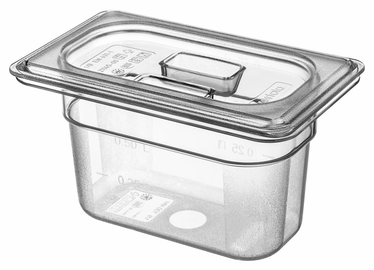 Изделие может использоваться на предприятиях общественного питания для хранения, замораживания и разогревания пищи, а также в кейтеринговых компаниях для транспортировки готовой еды. Предназначена для использования в температурном диапазоне от -40С до +100С. Можно мыть в посудомоечной машине при температуре до +95С, используя любое моющее средство. Изготовлена из поликарбоната, цвет прозрачный. Размеры производимых гастроемкостей и крышек являются унифицированными в соответствии со стандартом Gastronorm и позволяют использовать их совместно с современным кухонным оборудованием и инвентарем. Преимущества гастроемкостей из поликарбоната: - Легкость, мобильность. Пластиковые модели - оптимальный вариант при транспортировке продуктов и блюд в больших объемах. К тому же они не гремят при контакте друг с другом. - Прозрачность. Изделия из поликарбоната идеально подходят для демонстрации готовых блюд. Вы всегда видите, что находится внутри емкости. - Поддержка оптимальной температуры продуктов при хранении в холодильной камере (-44С до +99С).