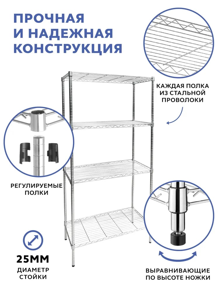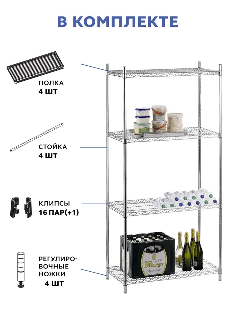 Стеллаж Gastrorag 1836-72 хромированная сталь, 91 x 45 x 183см