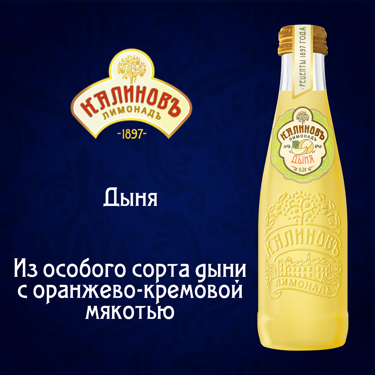 Калиновъ Лимонадъ – премиальная линейка лимонадов с использованием рецептур конца XIX века. Одиннадцать разнообразных вкусов ягодных, фруктовых и травяных лимонадов, разлитых в изящные винтажные стеклянные бутылки, перенесут вас в эпоху царской России. Состав Калиновъ Лимонадъ безупречен: только натуральные экстракты и ароматизаторы, концентрированные соки и природная вода. Превосходное качество исполнения Калиновъ Лимонадъ не оставит равнодушными даже самых взыскательных почитателей лимонадов. Уникальный вкус "Дыня" погрузит в глубину изысканного аромата и богатого вкуса премиальных лимонадов.