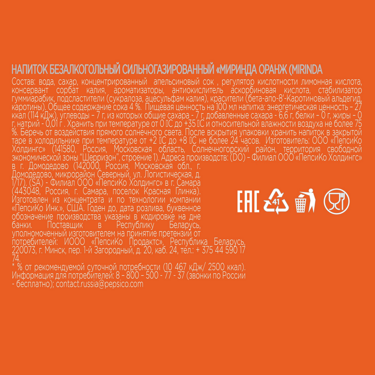 Миринда - яркий, освежающий напиток с насыщенным вкусом и ароматом апельсина. О бренде: Mirinda появилась в горячей Испании в 1959 году, и в переводе с эсперанто название означает "достойный удивления". Яркий вкус напитка позволяет убедиться, что Mirinda действительно способна удивлять!●Освежающий вкус и сладкий аромат апельсина, яркий оранжевый цвет и пузырьки – насыщенный микс ощущений Mirinda!●Насыщенн��й вкус и аромат апельсина●Попробуй прямо сейчас!●С натуральным апельсиновым соком!Миринда - яркий, освежающий напиток с насыщенным вкусом и ароматом фруктов и ягод. О бренде: Mirinda появилась в горячей Испании в 1959 году, и в переводе с эсперанто название означает "достойный удивления". Яркий вкус напитка позволяет убедиться, что Mirinda действительно способна удивлять!В ассортименте Mirinda классический вкус апельсина с натуральным апельсиновым соком и линейка Mix-It с неожиданными и яркими вкусовыми сочетаниями: клубника-личи и ананас-груша. Стремясь удивлять и вдохновлять своих потребителей,
