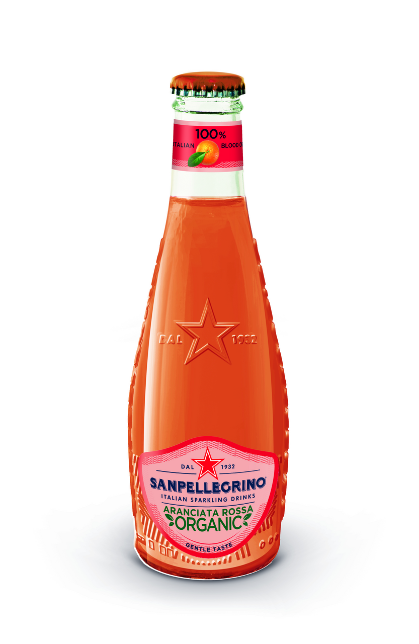 S. Pellegrino Aranciata Rossa - сокосодержащий газированный напиток, созданный для тех, кто хочет насладиться вкусом сочных и спелых фруктов в сочетании с нежными пузырьками. Для S. Pellegrino Aranciata Rossa используется сок оранжевых апельсинов и красных апельсинов сорта Sanguinello, этот сорт апельсинов имеет красноватую кожицу и сладкую нежную оранжево-красную мякоть. Кроме апельсинового сока в состав напитка Аранчата Россо входит минеральная вода S. Pellegrino.