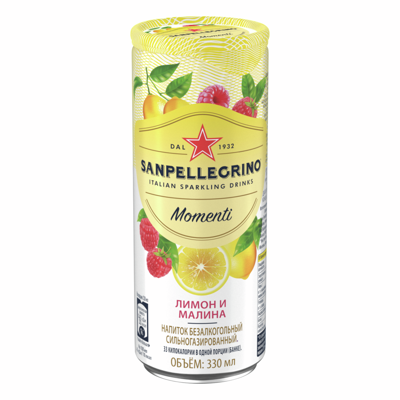 Напиток SanPellegrino Momenti лимон и малина газированный, 330мл x 6шт
