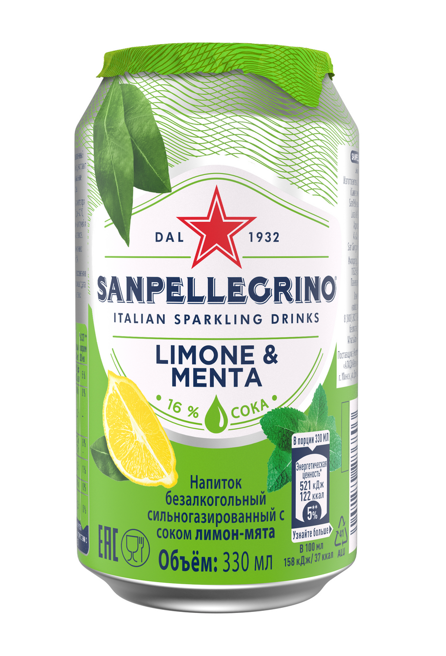 Sanpellegrino лимон и мята – это традиционное сочетание натурального сока сицилийских лимонов и ароматной мяты, которое подарит вам искрящийся освежающий вкус мохито, словно его приготовил для вас профессиональный бармен. Вызревшие на солнце средиземноморские лимоны придают напитку пикантную кислинку, которую прекрасно дополняет приятная мятная прохлада. Охлажденный напиток Sanpellegrino прекрасен на вкус и также идеально подходит для приготовления алкогольных коктейлей*. Попробуй новый Sanpellegrino лимон и мята и почувствуй средиземноморское лето на вкус! *-если вам исполнилось 18 лет.
