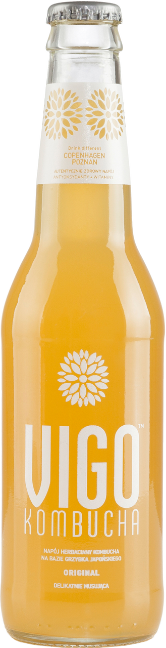 Легендарный и оригинальный вкус VIGO Kombucha Original.В результате процесса брожения дает смесь неповторимого и очень освежающего белого и черного чая.VIGO БЕЗ глютена. Содержит вещества, которые создают благоприятную среду для развития пробиотиков, которые полезны для Вашей иммунной системы и пищеварения.
