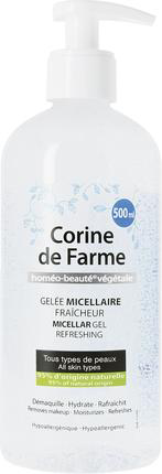 Очищающий мицеллярный гель состоит из мицелл, которые эффективно снимают макияж и легко очищают лицо, глаза и губы. Мицеллярный гель обладает приятной легкой текстурой с пузырьками воздуха, обеспечивает эффективное очищение для всех типов кожи и освежающий тонизирующий эффект. В состав средства входят экстракт василька, с успокаивающим и противовоспалительным действием, и гибискуса, известного своими тонизирующими свойствами.Эксклюзивная концепция Homeo-beaute vegetale (растительная гомеопатия для ухода за кожей) – это линия для ухода за кожей Corine de Farme, разработанная на основе точно определенных количеств тщательно отобранных и очищенных растений и цветов, позволяет обогатить кожу за счет эффективных преимуществ натурального состава. Способ применения:наносите мицеллярный гель ватным диском на лицо, кожу лица, глаз и губ.