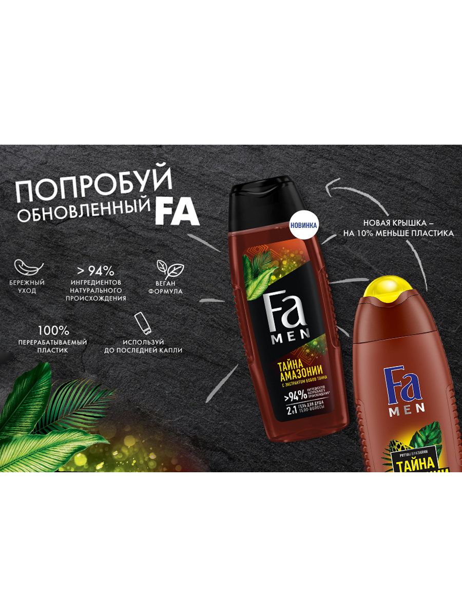 Гель для душа Фа Men Тайна Амазонии 2в1 с экстрактом бобов тонка, 250мл