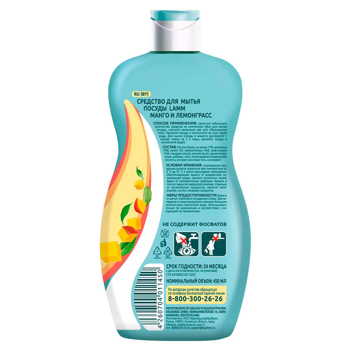 Гель для мытья посуды Lamm Нежные руки манго и лемонграсс, 450мл
