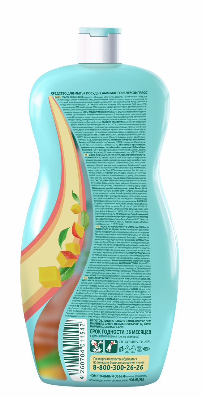 Гель для мытья посуды Lamm Нежные руки манго и лемонграсс, 900мл