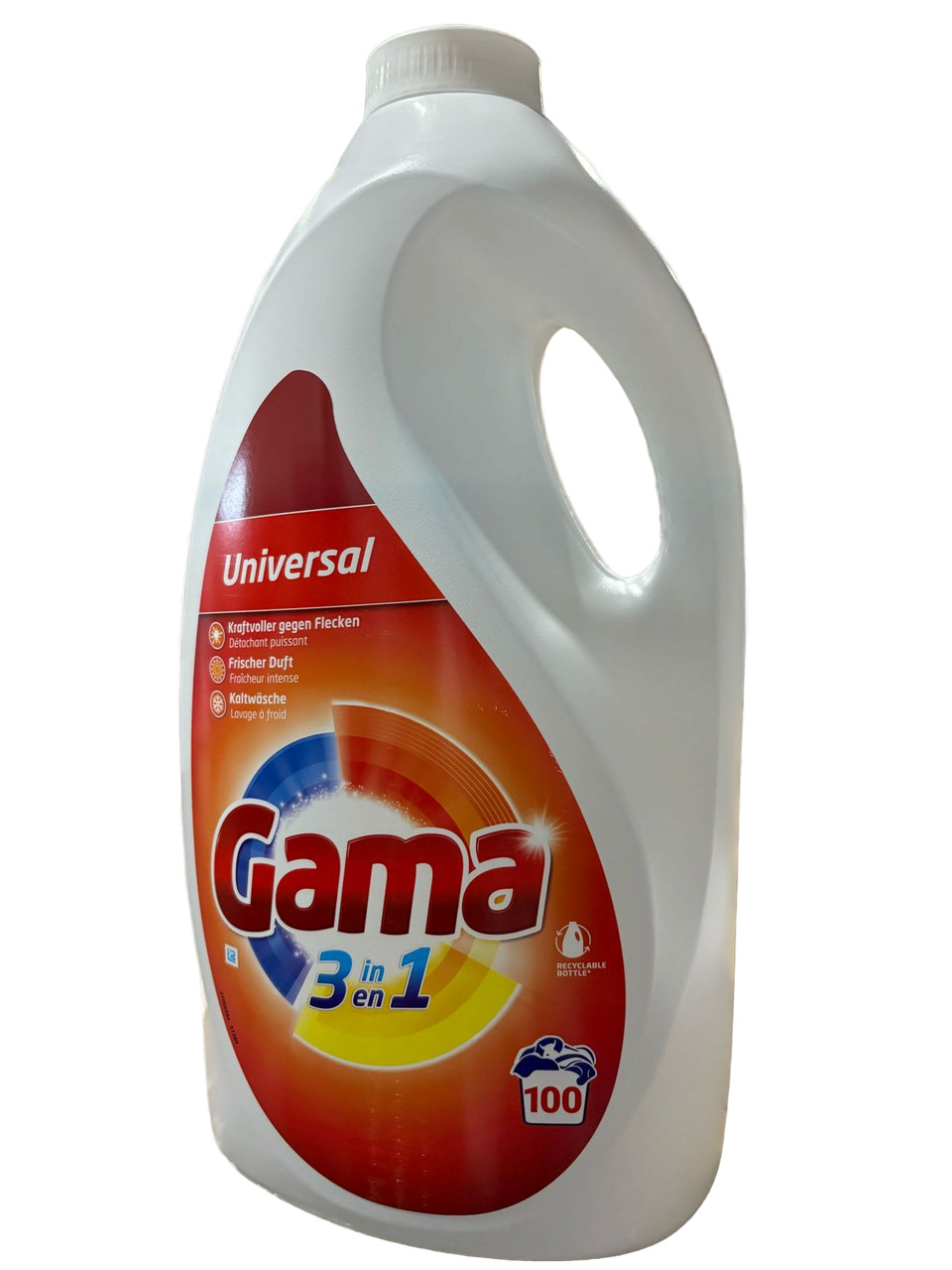 Гель для стирки Gama Universal 3в1 сочетает в себе свойства пятновыводителя и кондиционера-ополаскивателя, содержит компоненты, смягчающие воду и защищающие стиральную машинку от известкового налета. Подходит для стирки всех видов тканей. Эффективно отстирывает белые и светлые вещи. Лёгкий и приятный аромат надолго сохраняет ощущение свежести и чистоты. Концентрированная формула геля обеспечивает экономичный расход. Имеет удобный мерный колпачок. Подходит для ручной стирки в диапазоне температур от 20 до 90С. Отлично выполаскивается.