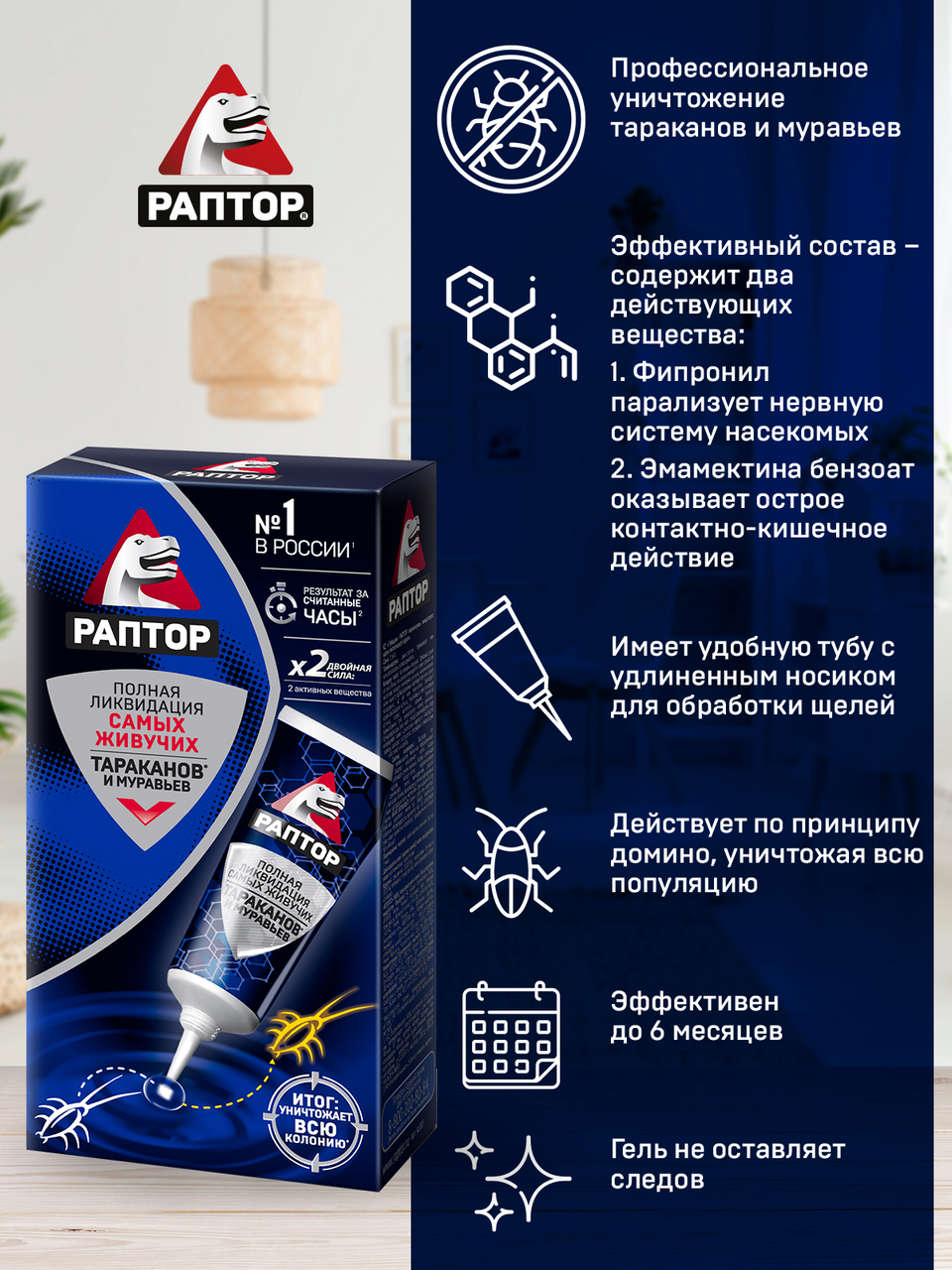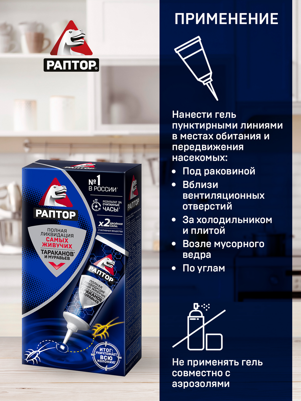 Гель Раптор от тараканов и муравьев, 75мл