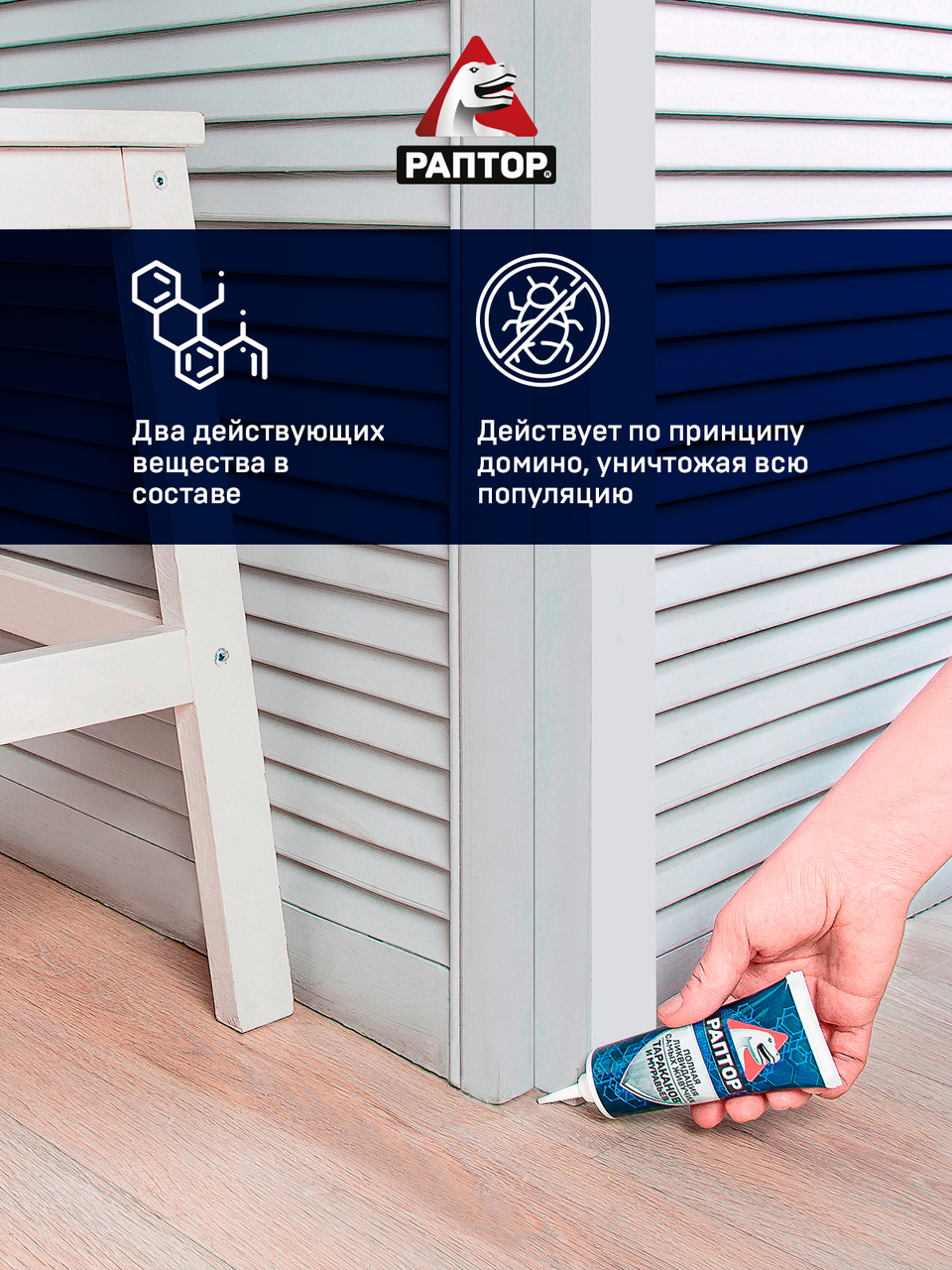 Удобная туба с удлиненным носиком-аппликатором. Не оставляет следов на поверхности после высыхания. Ловушка действует по принципу домино - уничтожается вся популяция. До 8 месяцев эффективного действия. Приятный аромат абрикоса и ванили.
