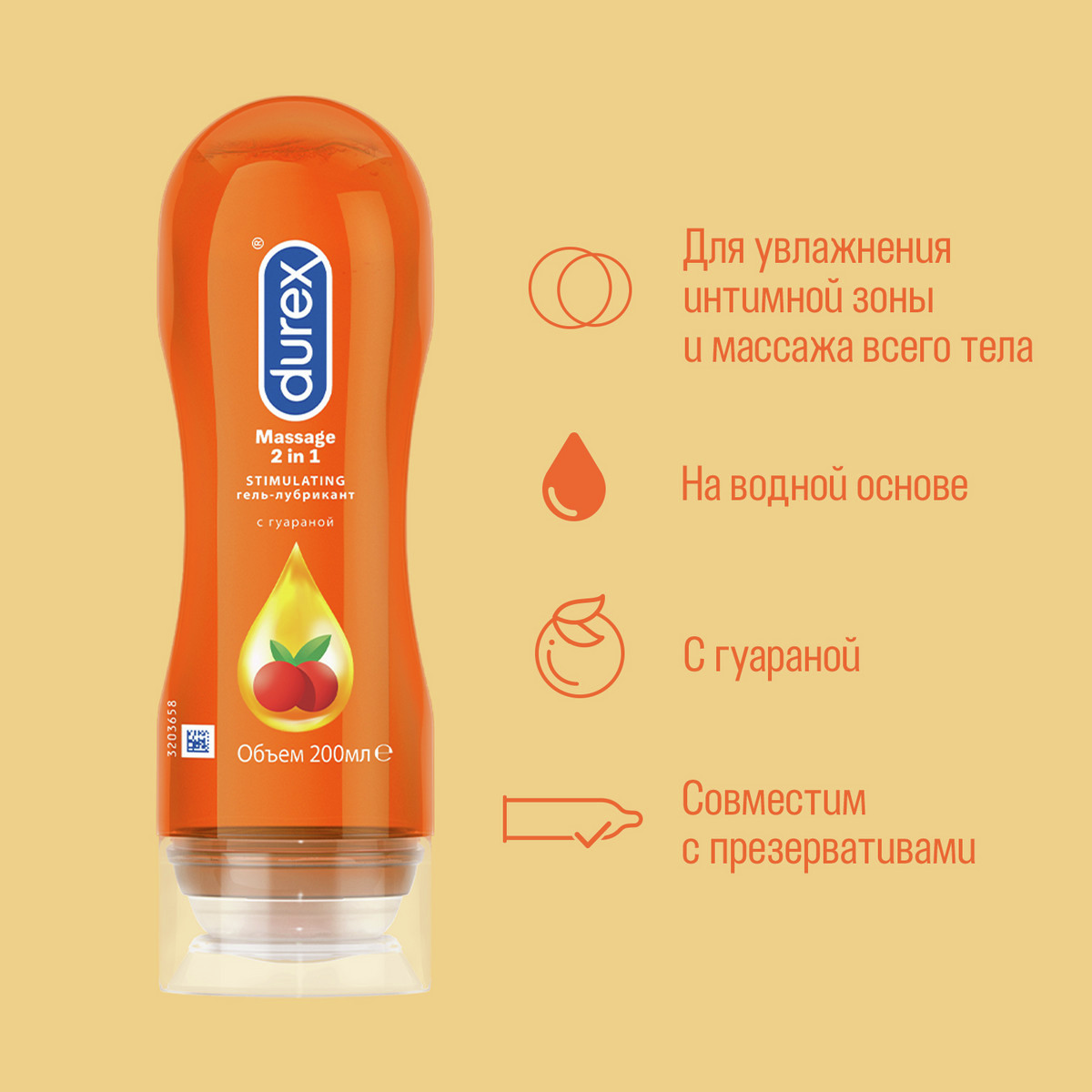 Гель-смазка Durex Stimulating 2в1 для массажа, 200мл