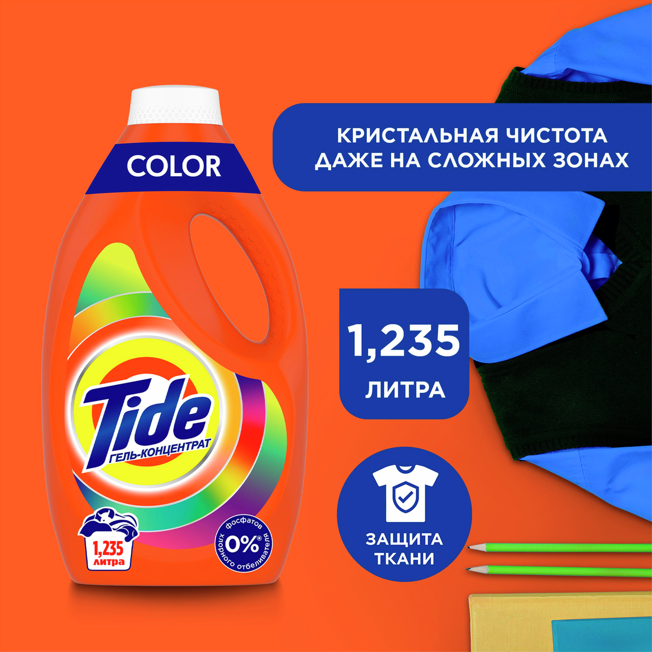 Гель для стирки Tide Color 1235 мл предназначен для стирки цветного и белого белья. Жидкий порошок Tide Color прекрасно очищает, бережно воздействует на ткань и придает приятный аромат вещам. Гель для стирки белья Tide Color дозируется непосредственно в барабан стиральной машины. Благодаря этому активные вещества мгновенно вступают в контакт с водой, эффективно удаляя загрязнения даже на коротких циклах и в холодной воде, не оставляя после стирки следов. Преимущества жидкого средства для стирки Tide Color: Кристальная чистота даже при температуре 30C; Не оставляет разводов; Сохраняет яркость цветных тканей; Справляется с застарелыми пятнами; Не дает грязи и пятнам въедаться в структуру волокон; Приятный легкий аромат; Не содержит фосфаты и хлорный отбеливатель. Порошок жидкий Tide Color также доступен в большой упаковке 2470 мл с более выгодной ценой за стирку.