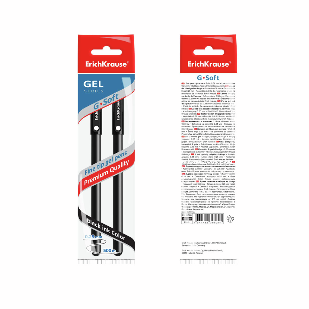 Ручка гелевая Erich Krause G-Soft черная, 2шт