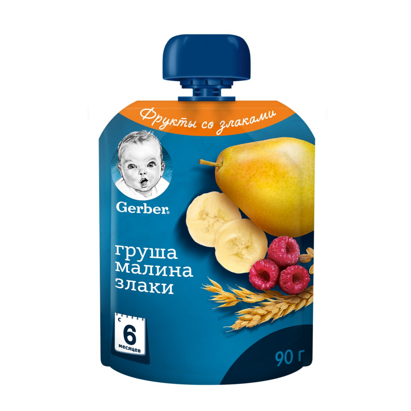 Gerber (Гербер) Фруктовое пюре со злаками Груша, малина, злаки 90 г. для питания детей старше 6 месяцев согласно законодательству РФ, в мягкой упаковке "пауч".ВАЖНОЕ ПРИМЕЧАНИЕ: идеальной пищей для грудного ребенка является молоко матери. Всемирная организация здравоохранения рекомендует исключительно грудное вскармливание в первые шесть месяцев и последующее введение прикорма при продолжении грудного вскармливания. Компания Нестле поддерживает данную рекомендацию.