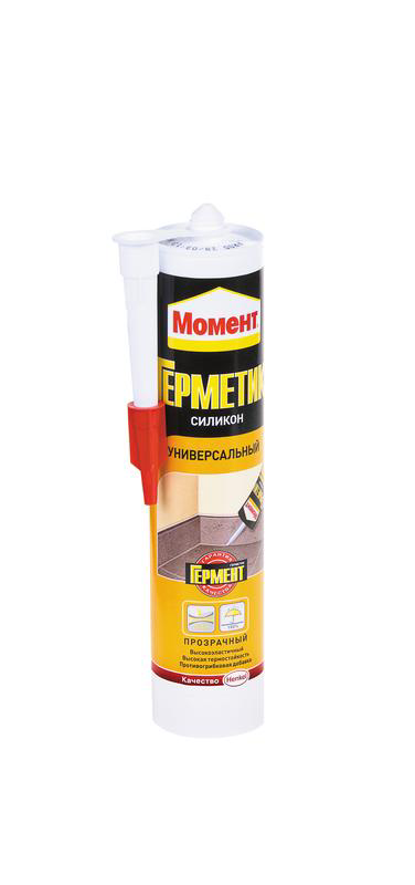 Силиконовый герметик МОМЕНТ. Предназначен для герметизации стыков и швов. Обладает адгезивностью к большинству материалов. Легко наносится и быстро затвердевает, не оставляя следов на поверхности. Не трескается и не отслаивается со временем. Устойчив к УФ-излучению. Может применяться для герметизации швов и стыков в помещениях. После отверждения не теряет своих адгезивных свойств и цвета.