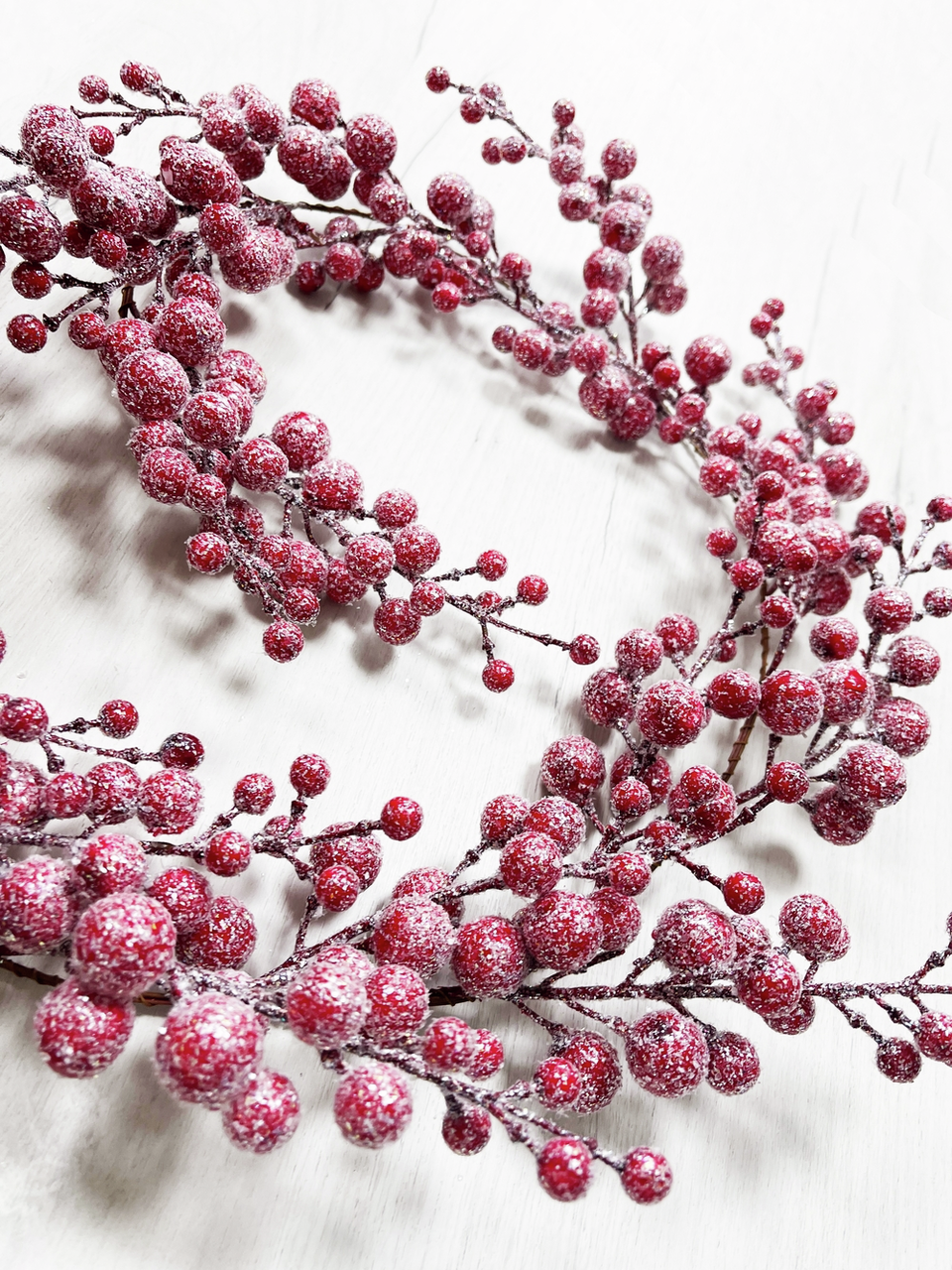 Гирлянда из красных ягод Christmasdeluxe в блестках пенопласт, 180см