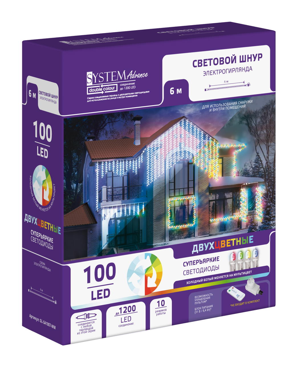 Гирлянда светодиодная GLOS 100 LED мультиколор, 6 м - изделие профессионального качества, предназначенное использования снаружи и внутри зданий. Она относится к коллекции соединяемых гирлянд System Advance Double Colour, работающих от понижающего трансформатора (не входит в комплектацию). Светодиодный шнур модели представляет собой гибкую трубку, внутри которой находятся 100 светодиодов (холодный белый свет и мультицвет). Он работает в 10 режимах смены мигания и цвета, которые удобно менять при помощи пульта. Гирлянда 100 Led может использоваться самостоятельно или соединяется с другими такими же моделями (до 1200 Led). Для этого следует снять с кончиков защитные заглушки и использовать коннекторы. Создавая конструкцию по вкусу и подключая новые Led-элементы, можно оригинально оформить фасад здания или интерьер в гостиной, холле, зале для встречи Нового года. Приобрести гирлянду светодиодную GLOS 100 LED мультиколор, 6 м можно в торговом центре METRO.