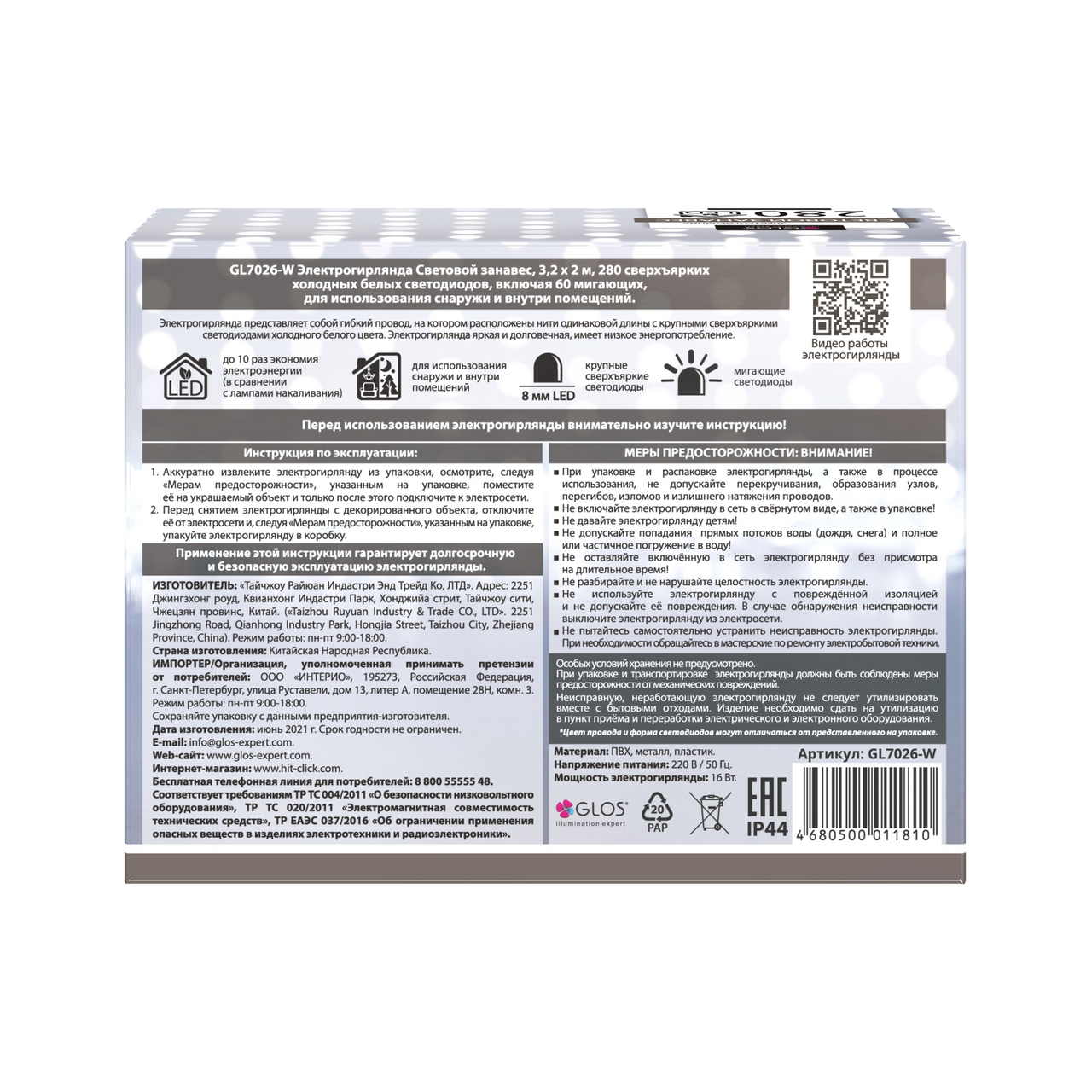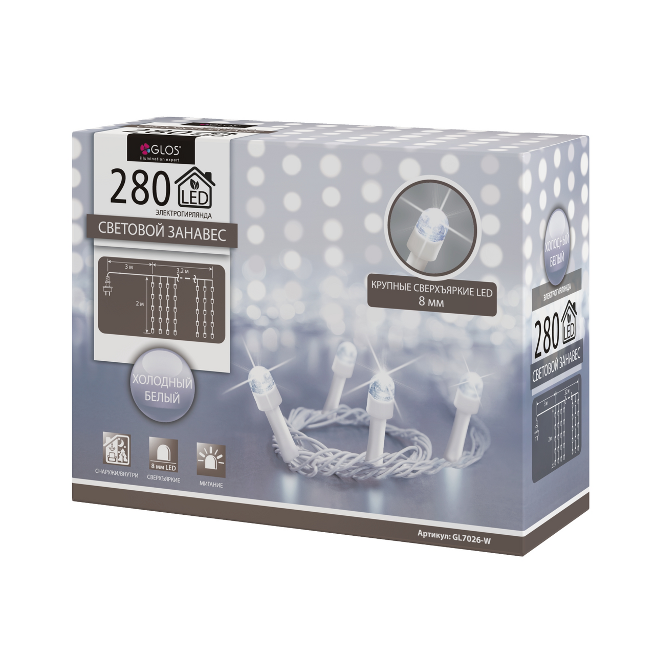 Электрогирлянда занавес Glos Световой 280Led холодный белый, 3.2 х 2м