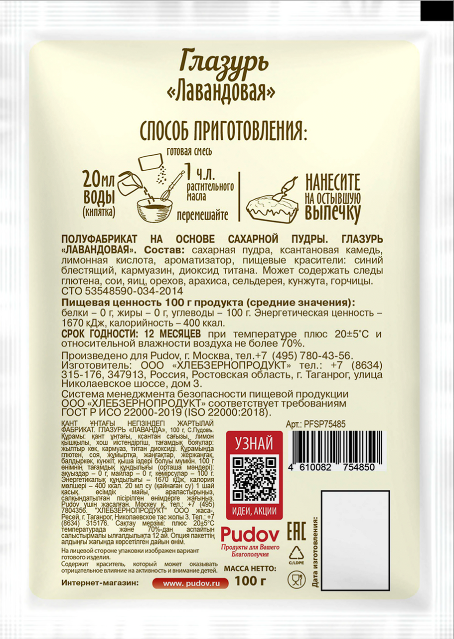 Глазурь лавандовая С.Пудовъ 100г