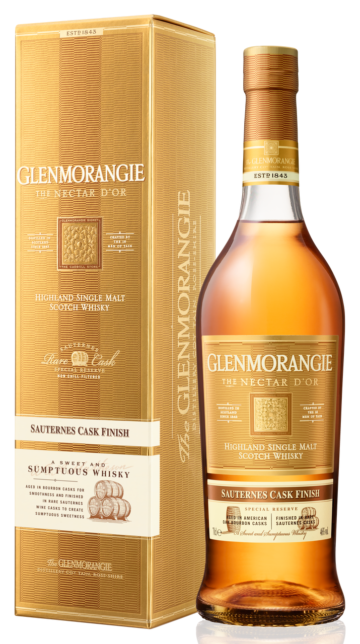 Благородный и мягкий спирт получают в медных перегонных аппаратах, которые считаются самыми высокими в Шотландии. Затем он выдерживается в лучших бочках и доводится до совершенства жителями Тейна. Создаваемый настоящими мастерами своего дела, которые свято чтут традиции, Glenmorangie будет радовать не одно поколение ценителей виски. Nectar D'Or - шотландский виски , выдержанный в бочках из под бурбона, а затем в бочках из под сотерна.