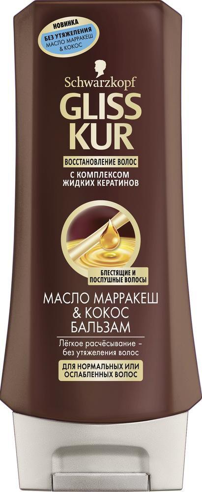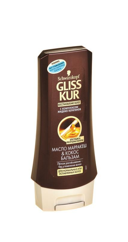 Формула Глисс Кур обогащена маслом Марракеш и экстрактом Кокоса – интенсивными ухаживающими компонентами, которые разглаживают волосы по всей длине, придают им мягкость и блеск и обеспечивают глубокое восстановление и защиту волос от механических повреждений и неблагоприятных факторов окружающей среды. Кроме того, Глисс Кур удалось добиться невесомой текстуры ухаживающих масел, что позволяет средствам линии масло Марракеш & Кокос глубоко восстанавливать волосы без утяжеления.