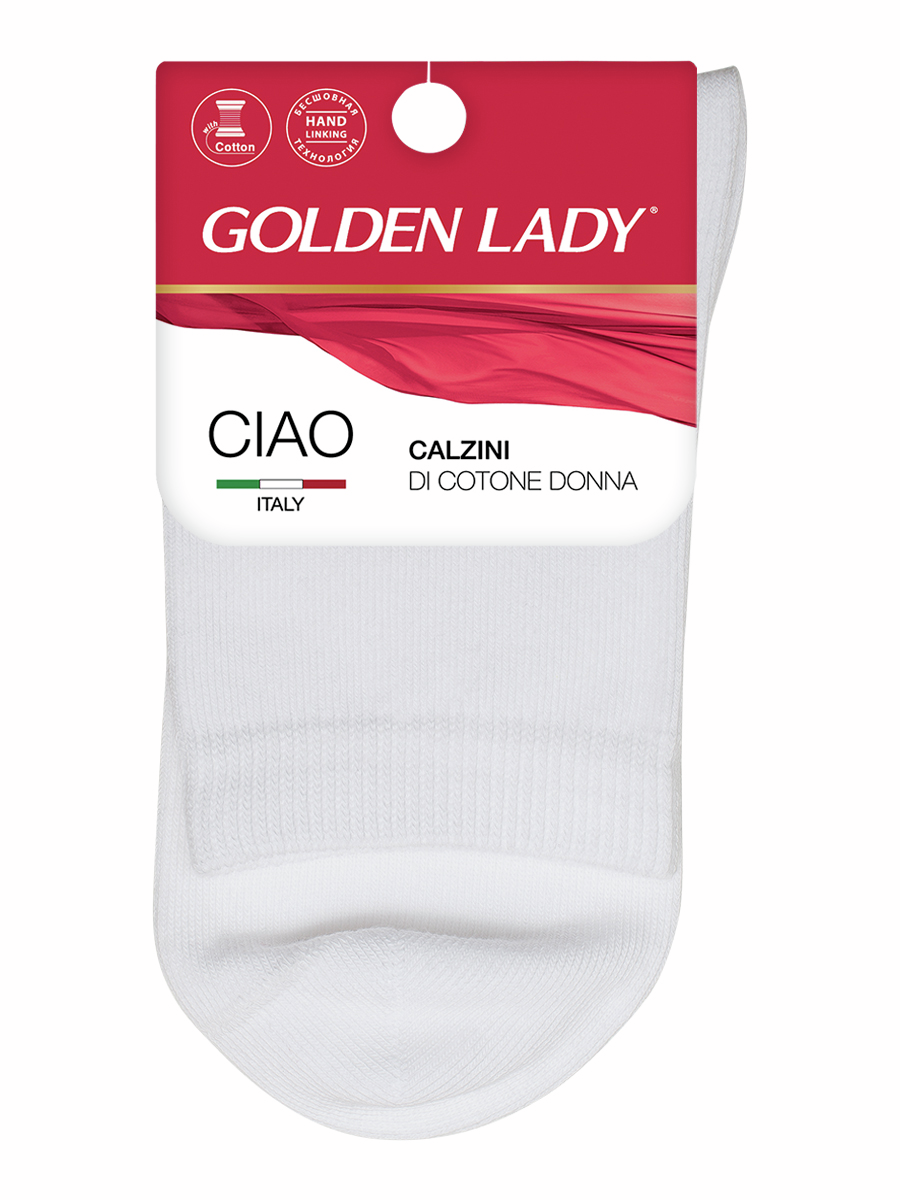 Всесезонные эластичные женские носки из хлопка с комфортной резинкой и кеттельным швом. Производство Узбекистан, состав: 80% Хлопок, 15% Полиамид, 5% Эластан. Купить Носки женские Golden lady Ciao белые, 39-41 вы можете в торговом центре METRO.