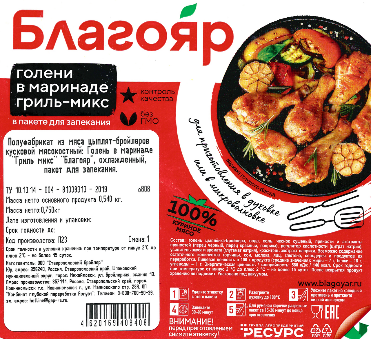 Голень цыпленка-бройлера Благояр гриль микс, 750г