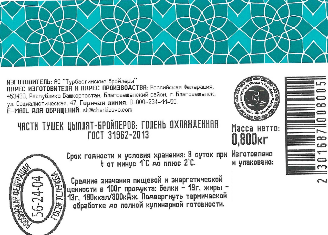 Голень цыпленка-бройлера Латифа Халяль охлажденная, ~800г