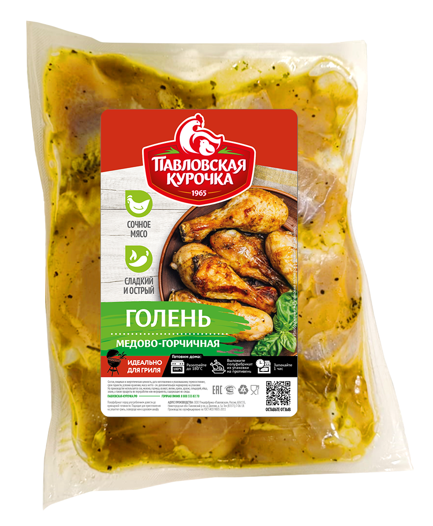 Голень цыпленка-бройлера Павловская курочка медово-горчичная охлажденная, ~1кг