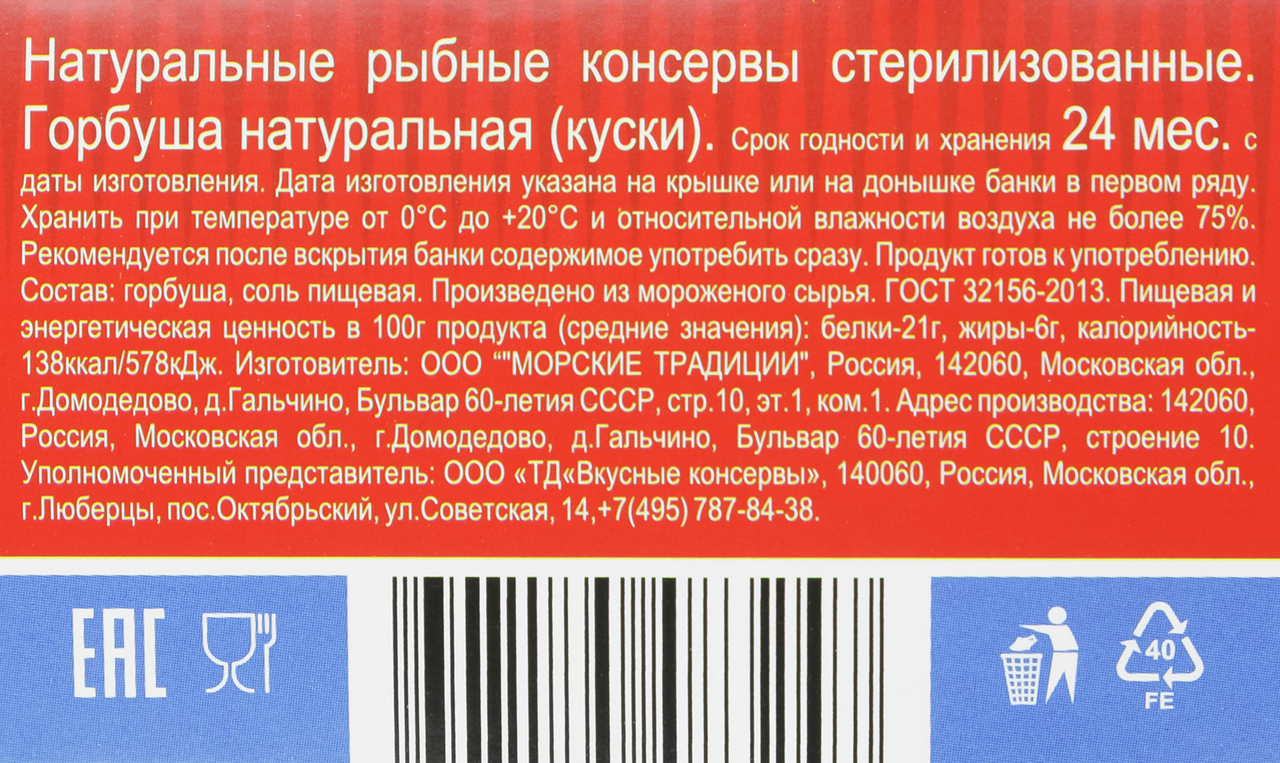 Горбуша натуральная. Производится в России на Дальнем Востоке. Изготовлена из отборной рыбы в сезон вылова. Сочное розовое мясо натуральной горбуши отличается нежностью, мягкостью и деликатным вкусом. Не содержит искусственных добавок и консервантов. Богато жирными кислотами омега-3, витаминами группы В и Е. Рекомендуется использовать для приготовления супов, а также салатов и других закусок. Рыбные консервы разнообразят ваш рацион и прекрасно подойдут к некоторым гарнирам.