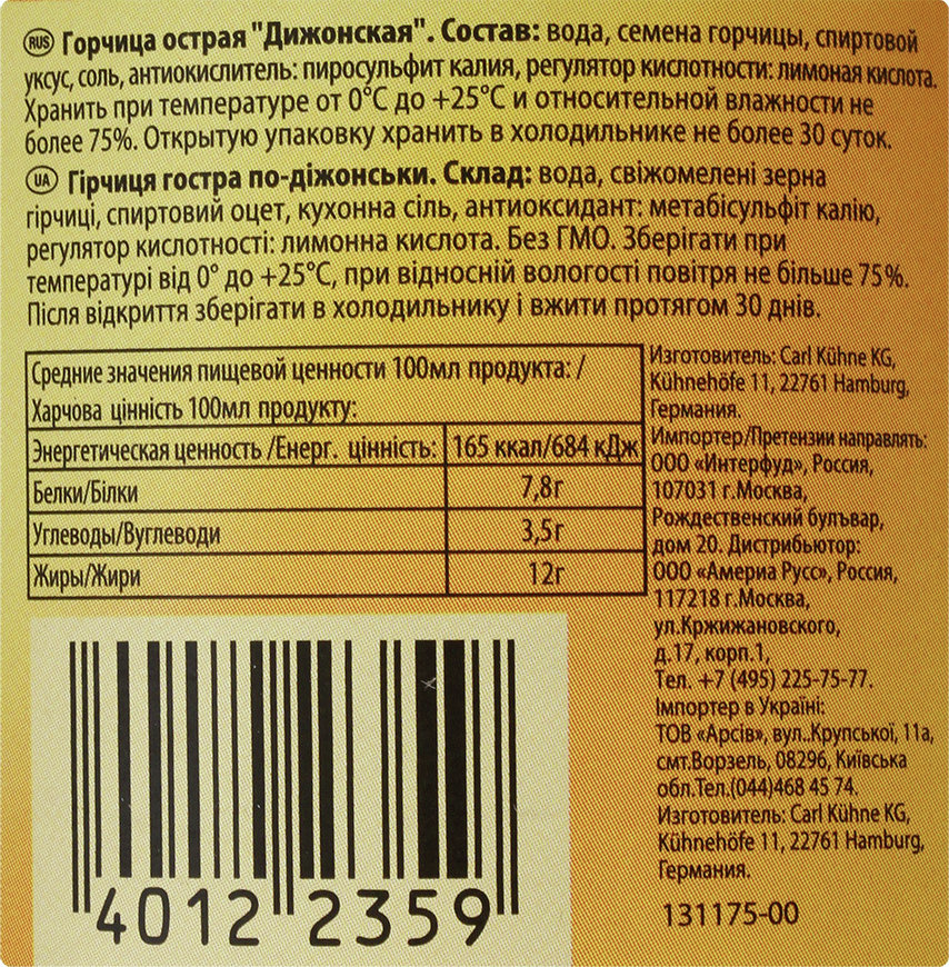 Горчица Kuhne Острая, 250мл создается по классическим рецептам русской кухни. Традиционная русская приправа добавит блюдам пикантности и прекрасно подчеркнет их вкус. Горчица станет идеальным вариантом для приготовления аппетитных хот-догов и оригинальных соусов. Продукт великолепно дополнит холодец, сардельки, запеканку, а также другие различные блюда из мяса, морепродуктов, птицы и рыбы. Продукт может также играть роль маринада. В качестве закуски к крепким алкогольным напиткам на праздничном столе могут выступать изысканные бутерброды с горчицей.