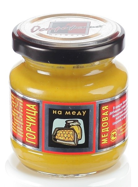Горчица медовая ОСТРОФСКИЙ, 120 г разнообразит вкус привычных блюд. Ее можно добавлять в маринад, закуски, салаты, соусы, супы и домашний майонез. В составе приправы содержится натуральный ароматный мед, который придает необычной пикантности вкусу. Продукт имеет полезные свойства. Его употребление улучшает пищеварение и циркуляцию крови, благотворно влияет на организм при простуде. Приобрести горчицу медовую ОСТРОФСКИЙ, 120 г можно в торговом центре МЕТРО. Страна: Россия.Бренд: Острофский. Вес: 120 г. Состав: вода питьевая, горчичный порошок, сахар, натуральный мед, масло подсолнечное, соль, кислота уксусная 70%, пряности.Пищевая ценность: белки — 0,3 г, углеводы — 14 г, жиры — 6 г. Энергетическая ценность: 111,2 ккал. Условия хранения: при температуре 0C до +10 C.Срок хранения: 12 месяцев. Условия хранения после вскрытия упаковки: 6 месяцев при температуре +10C до +20 C.Вкус: медовый.Упаковка: стеклянная банка.