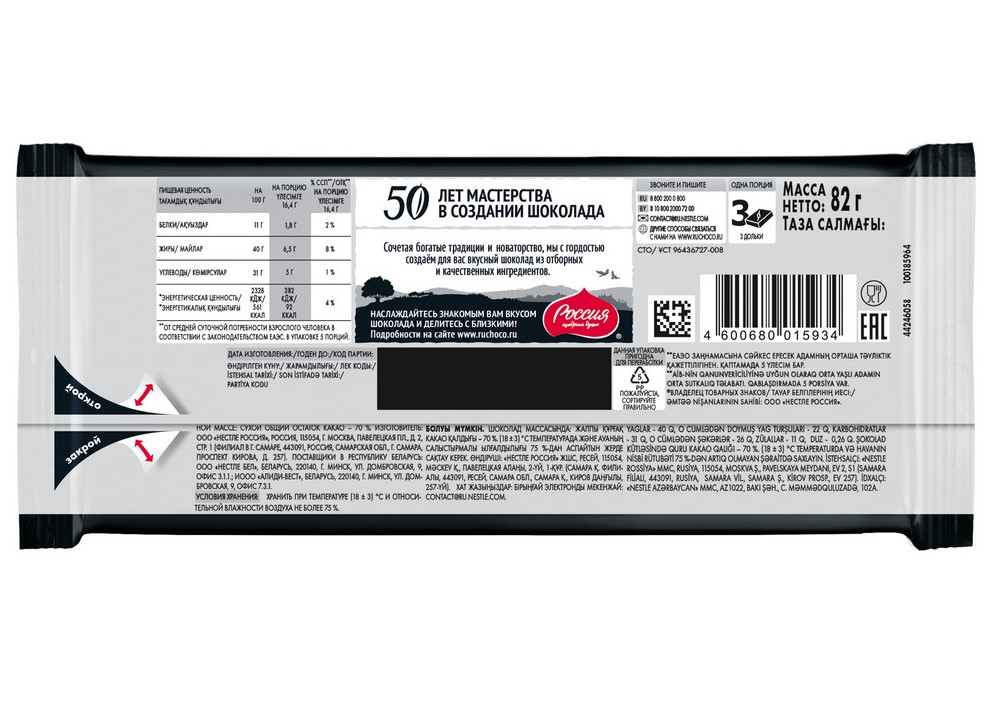 Шоколад Россия Щедрая душа Российский горький, 82г порадует ценителей десертов с насыщенным вкусом. Благодаря натуральным ароматизаторам он привлекательно выглядит. Такой шоколад можно не только есть самостоятельно или с чаем, с кофе. Он легко плавится и может использоваться для украшения выпечки либо создания разнообразных десертов. Вкусный и питательный продукт можно брать с собой на работу, в школу или в институт, в поездку, чтобы иметь возможность в любой момент подкрепить силы.