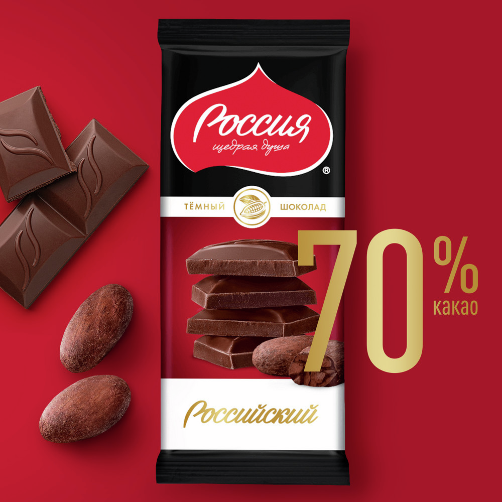 Шоколад Россия Щедрая душа Российский горький, 82г