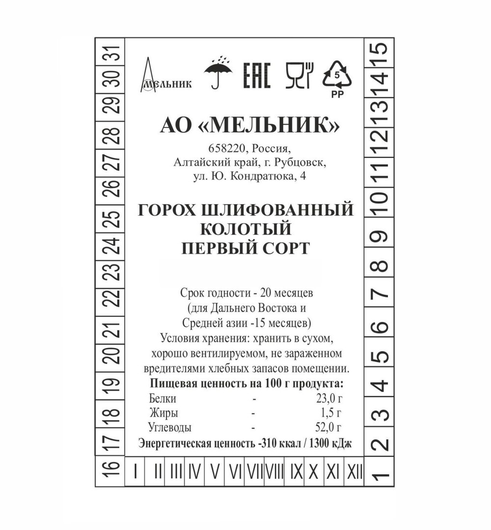 Горох шлифованный первый сорт ГОСТ, ~50кг