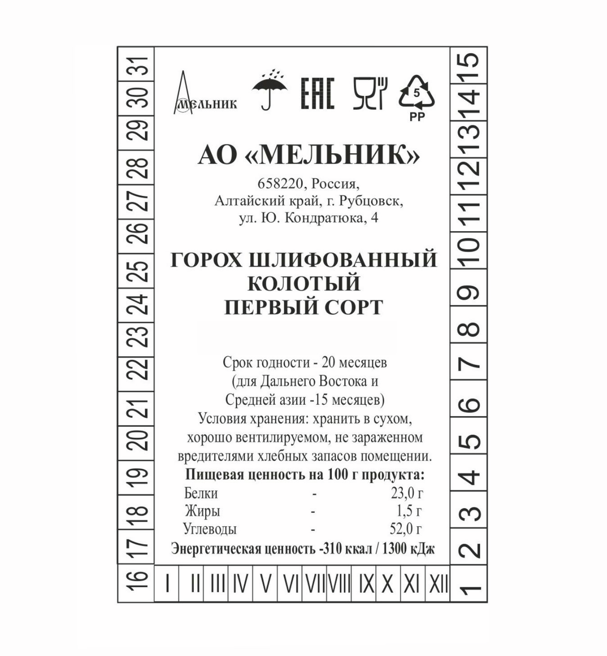 - Энергетическая ценность, ккал/100 г 310