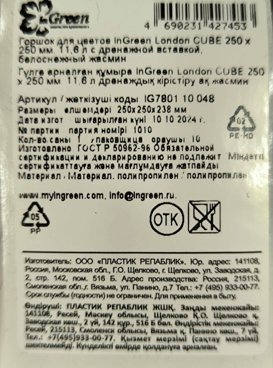 Горшок Ingreen London Cube Белоснежный жасмин, 11.6л