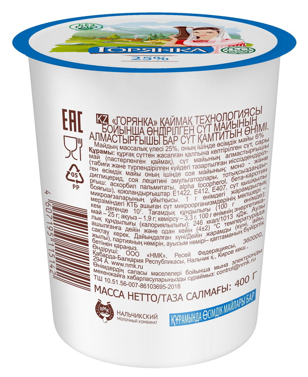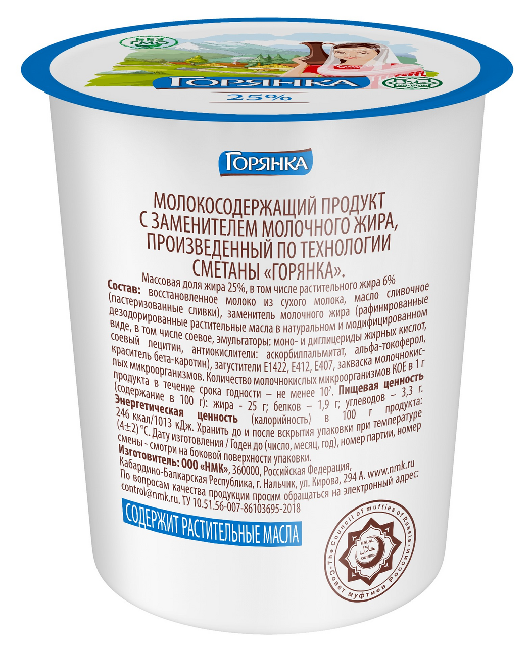 Продукт сметанный молокосодержащий Горянка 25%, 400г