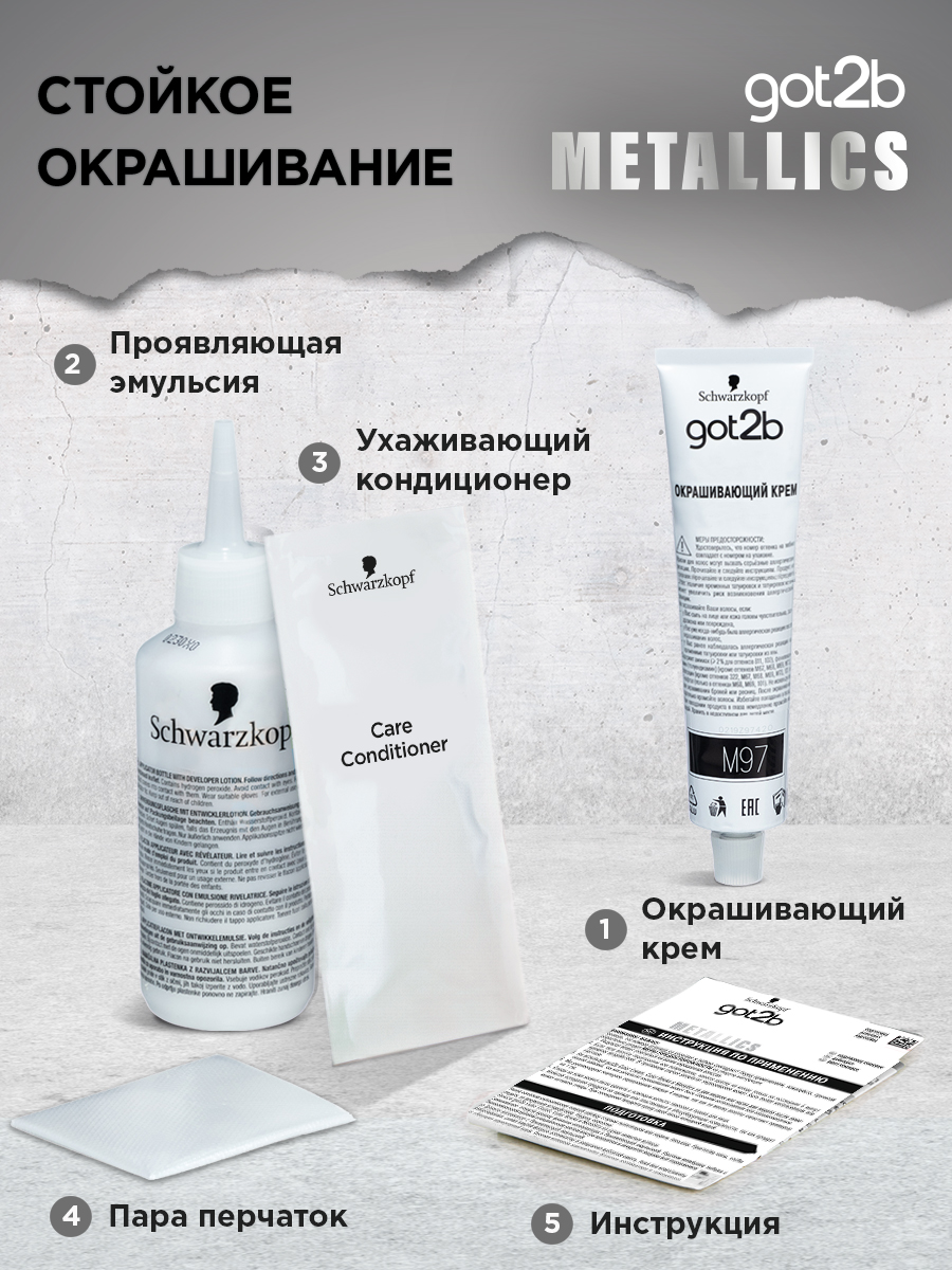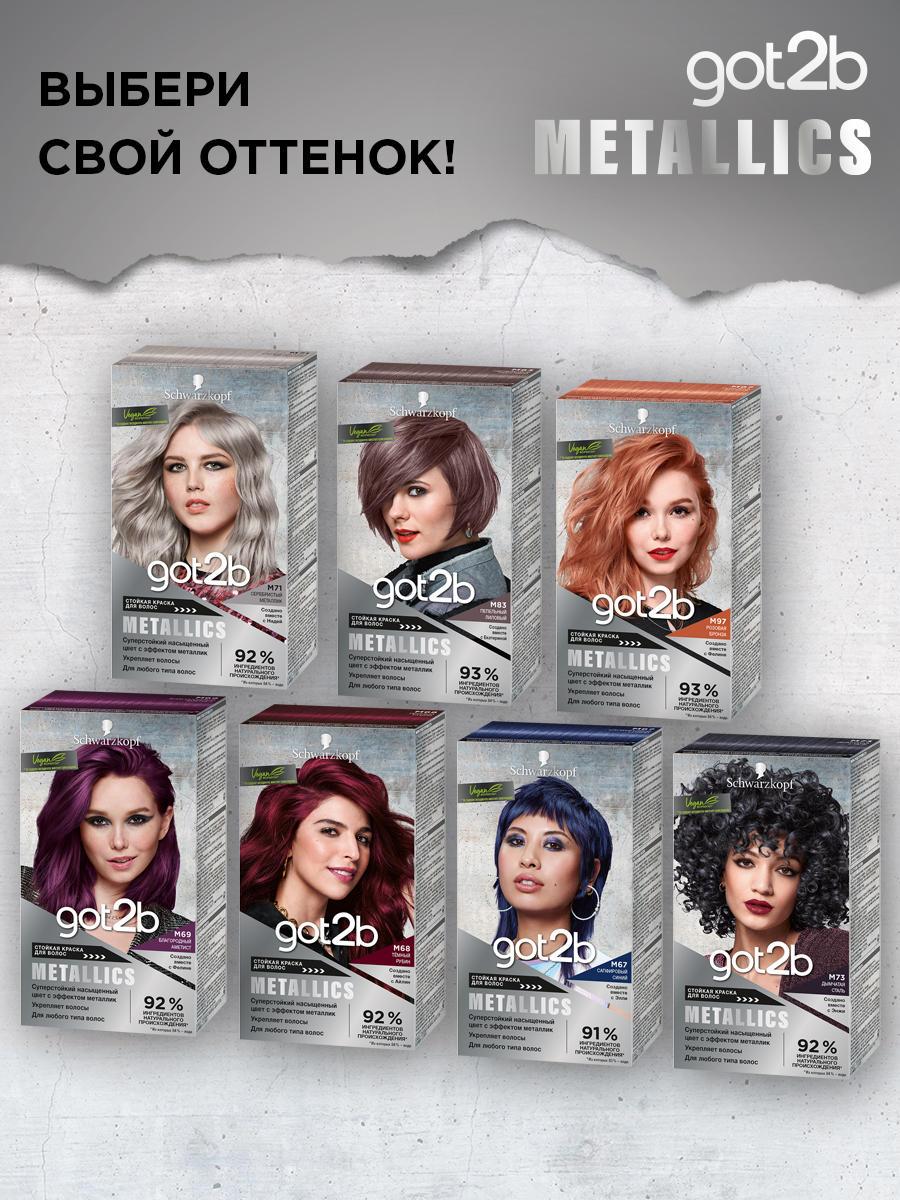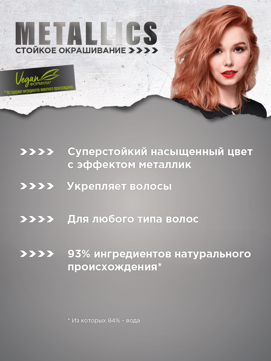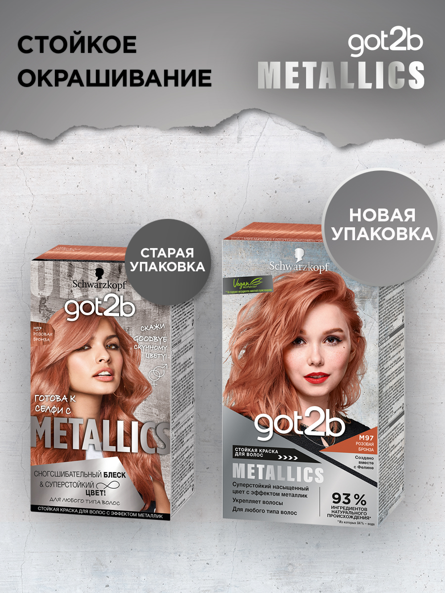 Будь готова к селфи с Краска для волос Got2b Metallics М97 Розовая бронза, 142.5мл! Смешай, нанеси, сражай наповал! Оттенки с соблазнительным блеском металлик и защитой от вымывания для стойкого цвета. Скажи GOODBYE скучному цвету со сногсшибательным блеском от got2b Metallics!