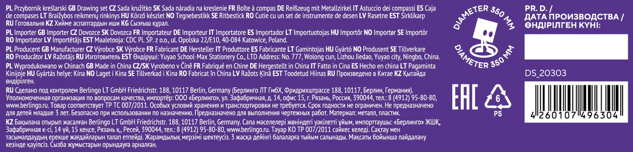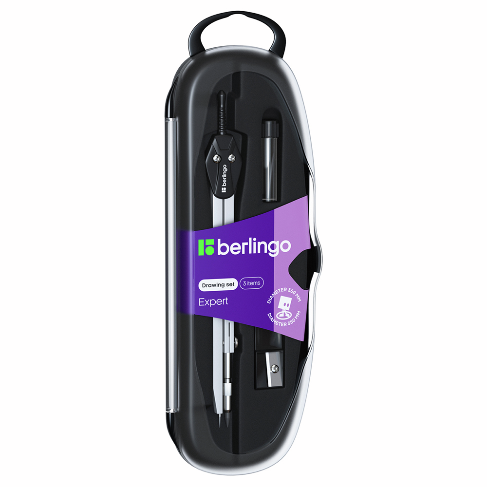 Набор в пластиковом пенале с европодвесом - 3 предмета (циркуль, сменный грифель, точилка). Набор предназначен для чертежно-графических работ.