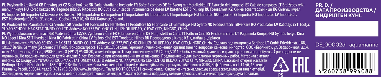 Готовальни Berlingo Instinct выполнены из прочного цинкового сплава. В состав набора входят: циркуль с эргономичной головкой и пенал с запасным грифелем. Отличаются иглой со специальной заточкой и эргономичной головкой циркуля, что делает процесс использования более безопасным и удобным для детей. Дизайн выполнен в стиле коллекции Instinct : сочетание пастельных цветов с черным. Готовальни упакованы в пластиковый пенал.