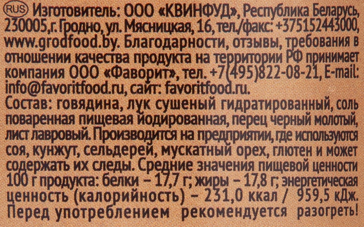 Говядина тушеная Гродфуд, 338г