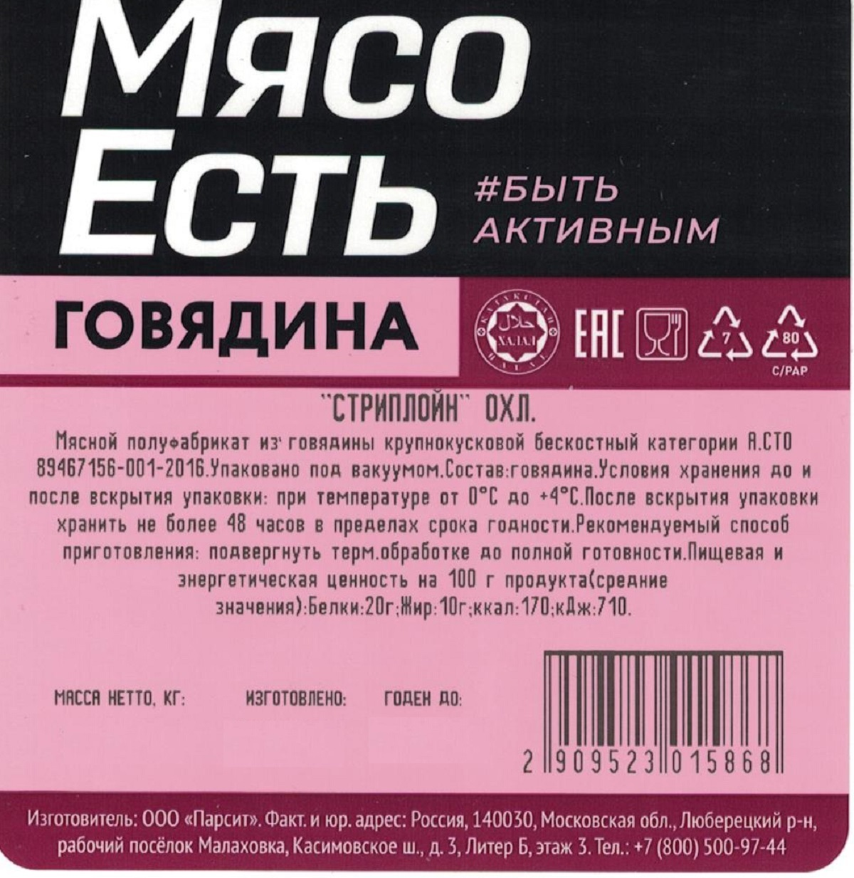 Говядина Мясо есть! стейк Стриплойн Халяль без кости охлажденная, ~2кг