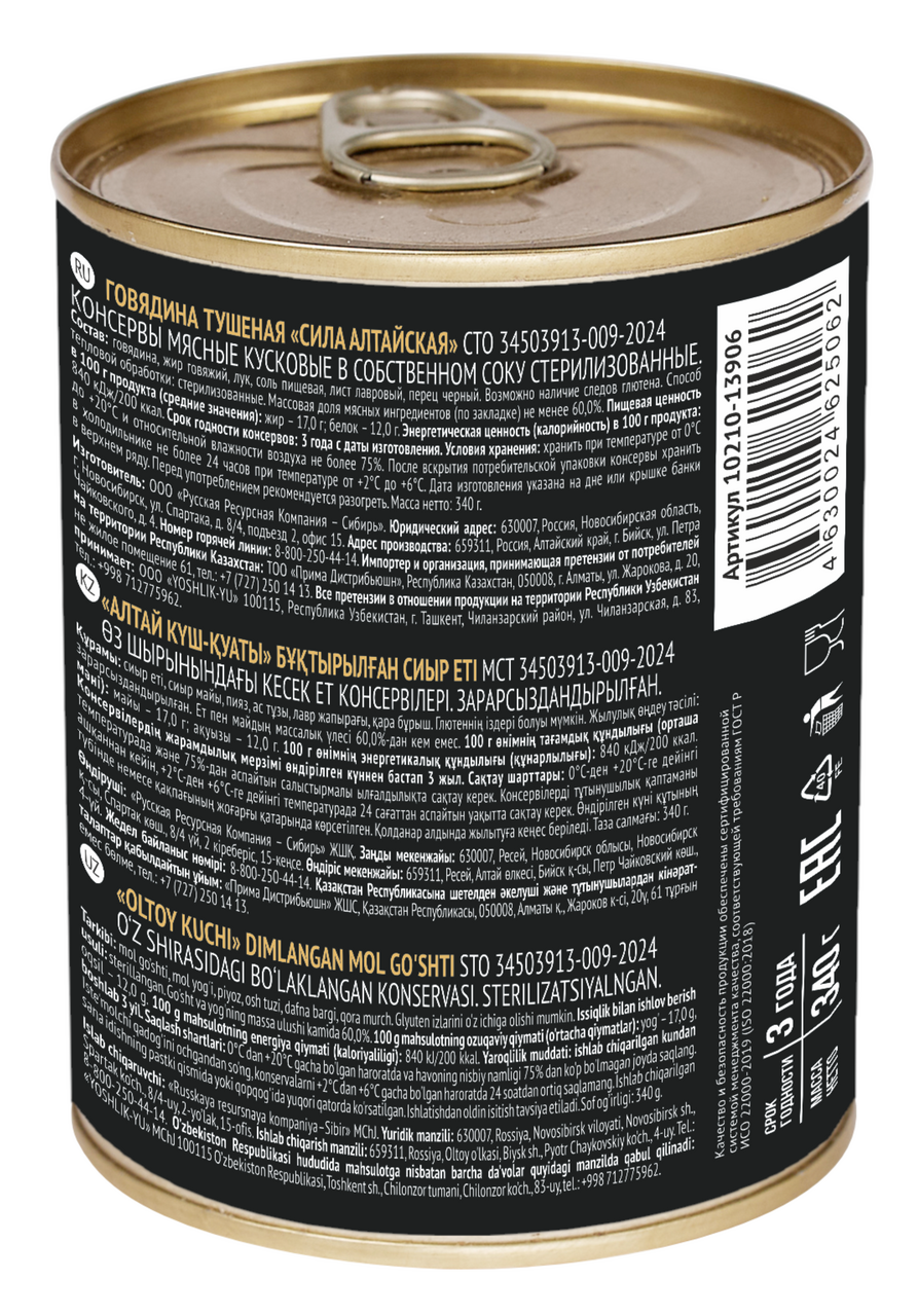Сила - это не просто тушёнка, а настоящий вкус домашнего уюта и доверия к качеству. Наш продукт создан для тех, кто ценит натуральность, надёжность и насыщенный мясной вкус без компромиссов. Алтайская говядина Сила - это 100% мясо от животных, выращенных в экологически чистом регионе - на Алтае, где чистый воздух, натуральные корма и заботливое отношение к животным.