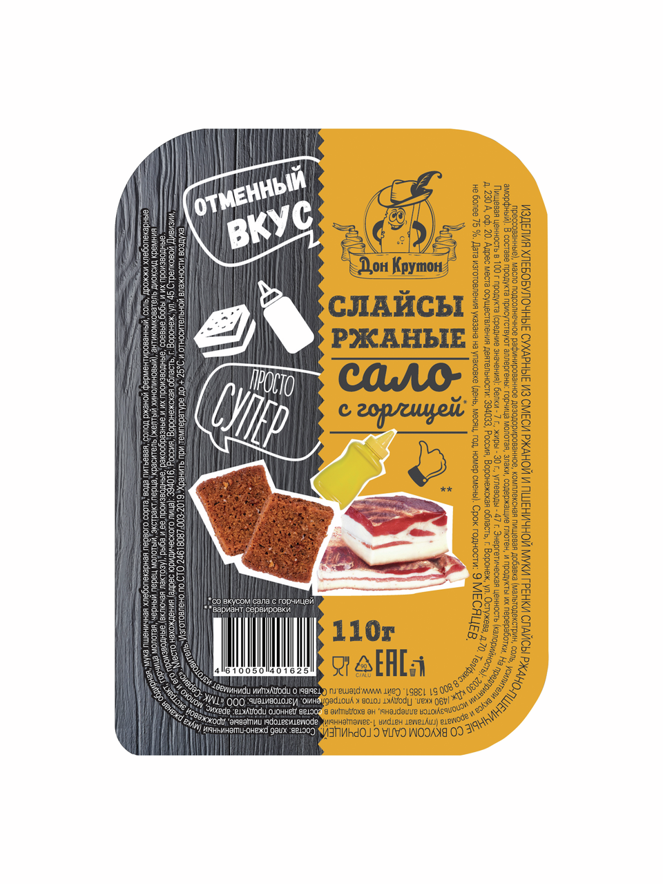 Гренки-слайсы Дон Крутон со вкусом Сало с горчицей ржано-пшеничные, 110г