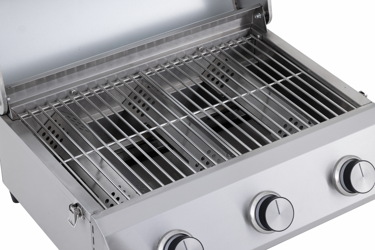 Откройте для себя новый уровень готовки на открытом воздухе с газовым настольным грилем Cathan 47х62х35см от METRO PROFESSIONAL. Прочный корпус и очаг из нержавеющей стали дают уверенность в долговечности и легкость ухода за устройством, а крышка из нержавеющей стали защищает ваши блюда и сохраняет тепло, создавая идеальные условия для равномерной прожарки. Решетка для жарки из нержавеющей стали обеспечивает отличное распределение тепла и выразительную ребристость, которая сохраняет сочность мяса и позволяет сделать золотистую корочку. Три независимые конфорки по 2,2кВт каждая, изготовленные из нержавеющей стали, дают гибкость и мощность для одновременной подготовки разных блюд: мясо, овощи и гарниры - все под контролем благодаря точной регулировке пламени. Встроенный датчик температуры позволяет мгновенно отслеживать температуру и поддерживать идеальные условия приготовления без лишних догадок. Компактные размеры делают гриль настолько портативным, что он станет незаменимым помощником на даче, в пикнике или выездной кулинарной станции.