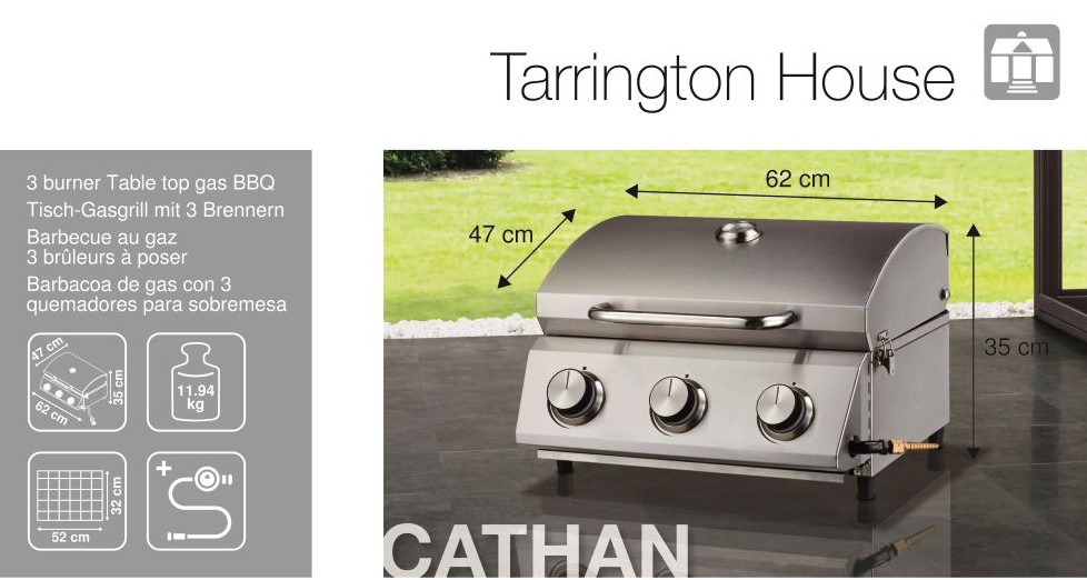 Tarrington House Гриль газовый Cathan настольный 3 горелки, 47 x 62 x 35см