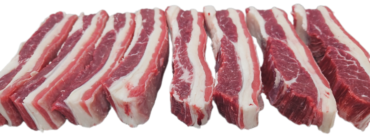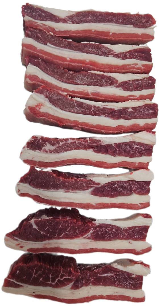 Говяжья грудинка берется из передней части туши. Мясо обладает достаточно плотной текстурой, включающей множество волокон и щедрую жировую прослойку. Этот отруб требует длительной и медленной термической обработки. Так мясо получится нежным, сочным и ароматным. Грудинку используют для приготовления бульонов, запекания и для томления в горшочках.